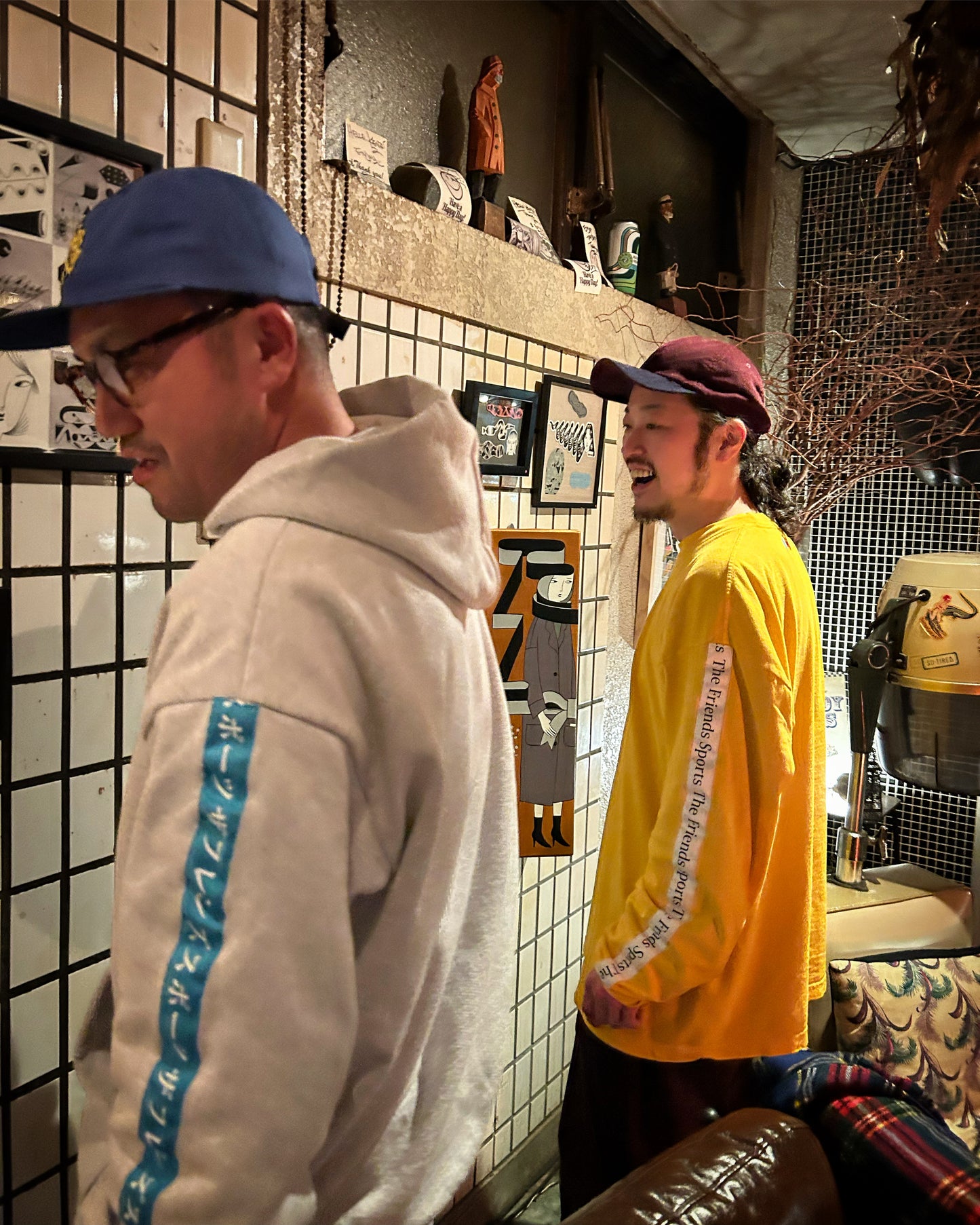 - 左腕表に「ザフレンズスポーツ」のカタカナテープが縫いついております。綺麗な縫製は日本の職人さんによる作業。是非、セットアップでもお楽しみください。
